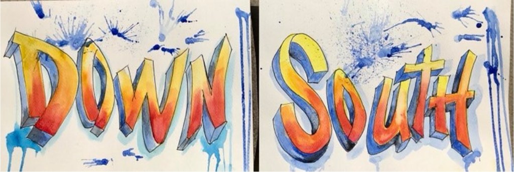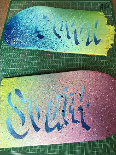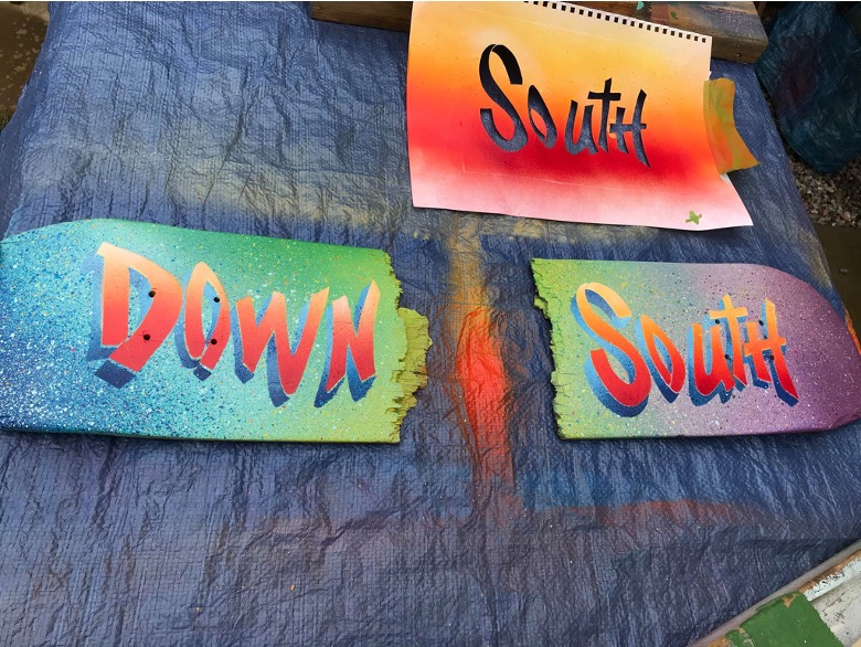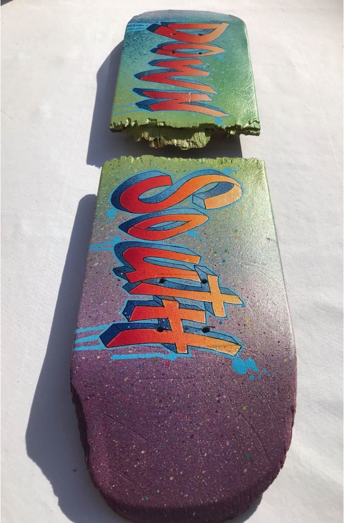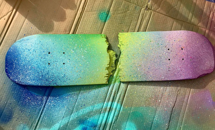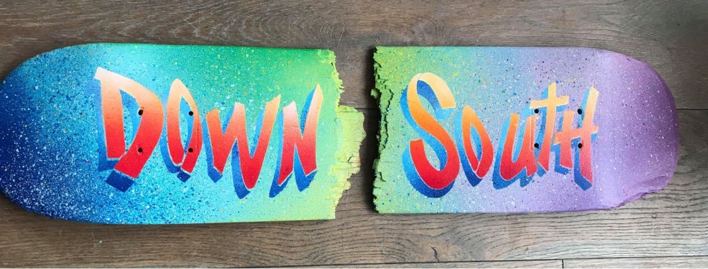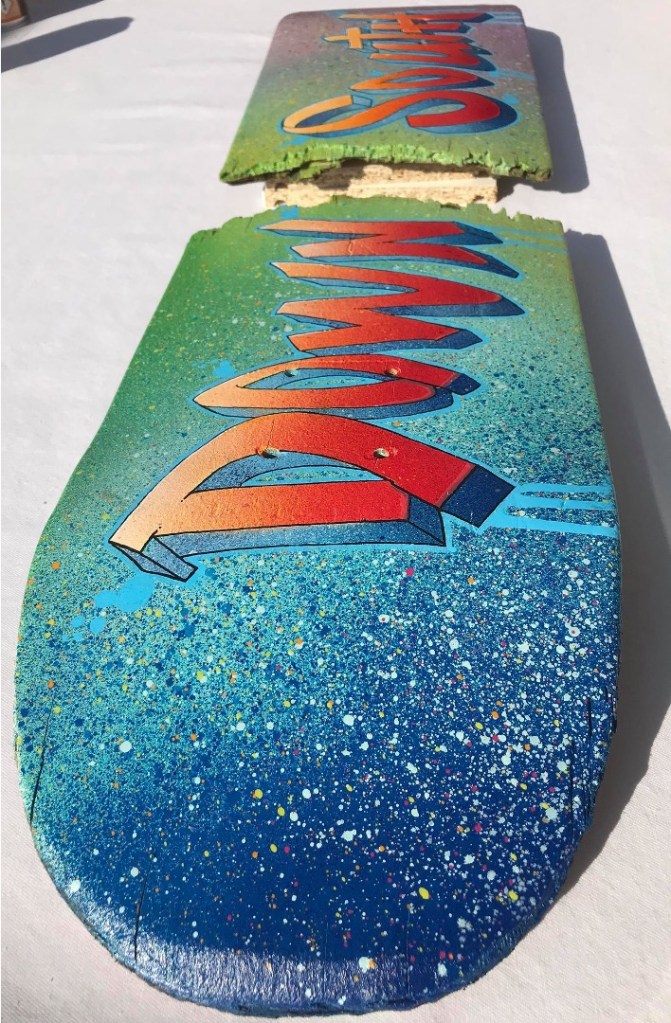 These memories inspired me to create a piece that represented two of my life long loves: skateboarding and graffiti art. Both seem to go hand in hand and I find myself drawn to each subculture’s anti-establishment and rule-breaking forms of expression.