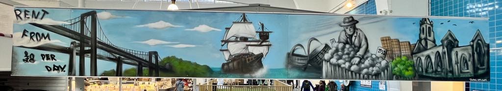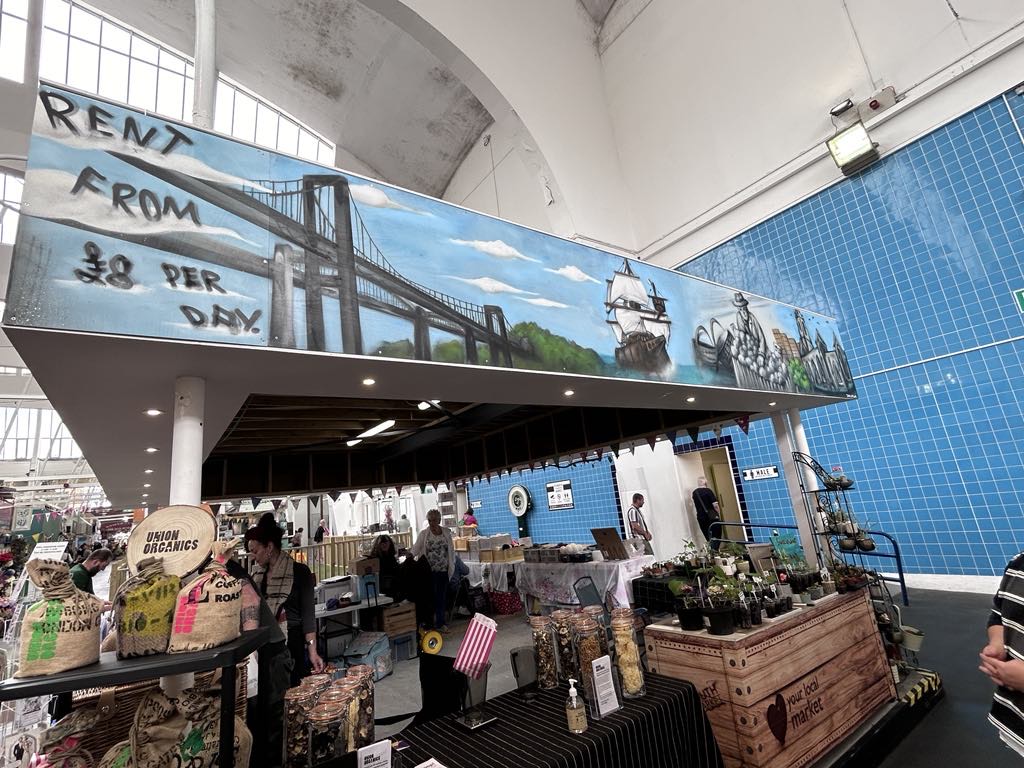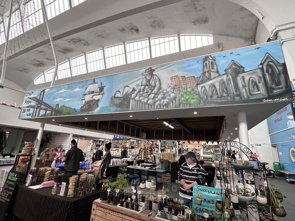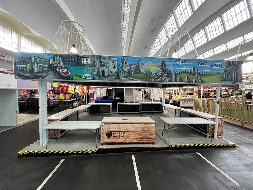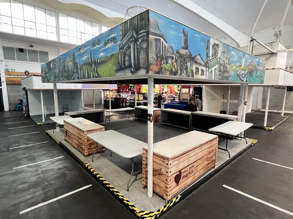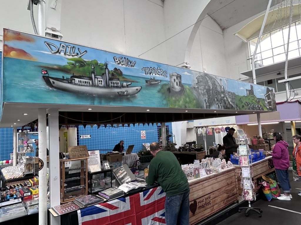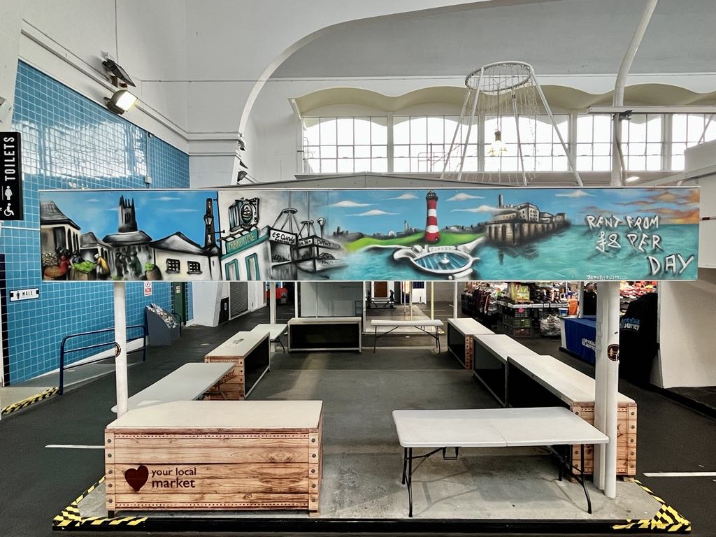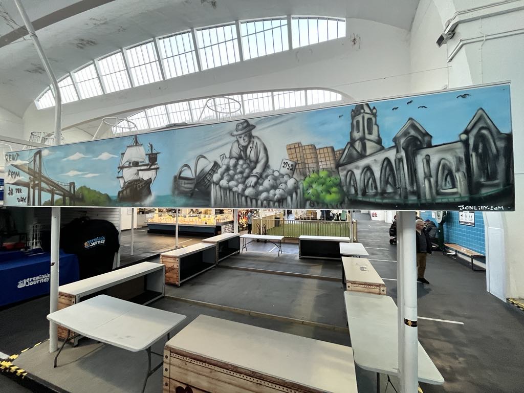 I was commissioned by Plymouth Market to design and produce decorative signage for their Daily Bench Traders’ pitch. They had requested a theme of Plymouth landscapes and history, so I had fun researching the history of the market and finding old photographs and paintings from Victorian market traders, post-war black and white images, to the present day.