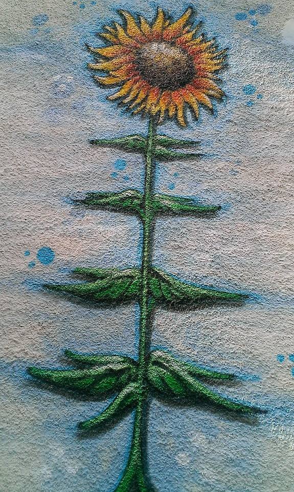 Sunflower on garden wall | Buckfastleigh, Devon| March 2015