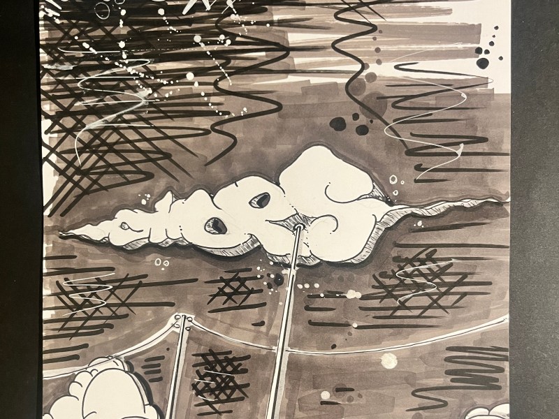 Fineliner and ink on paper. Sketch ideas.