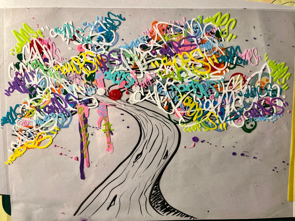 Untitled | May 2024 Other Solo Work An experiment making shapes with words. Posca paint pen, finaliser, paper, acetate. Related