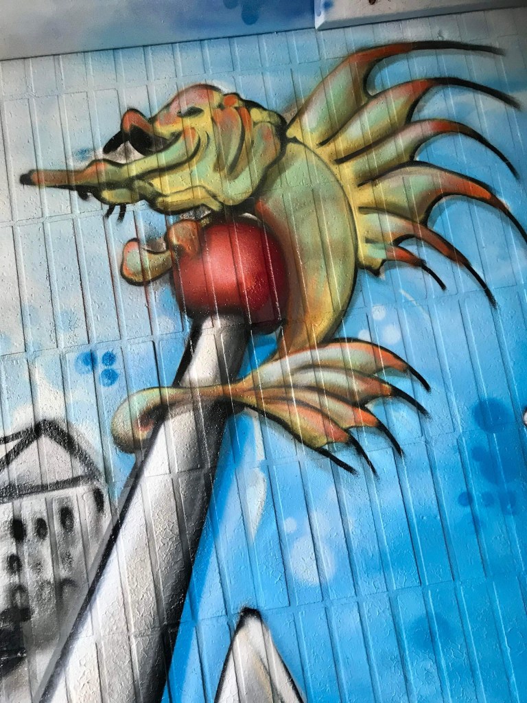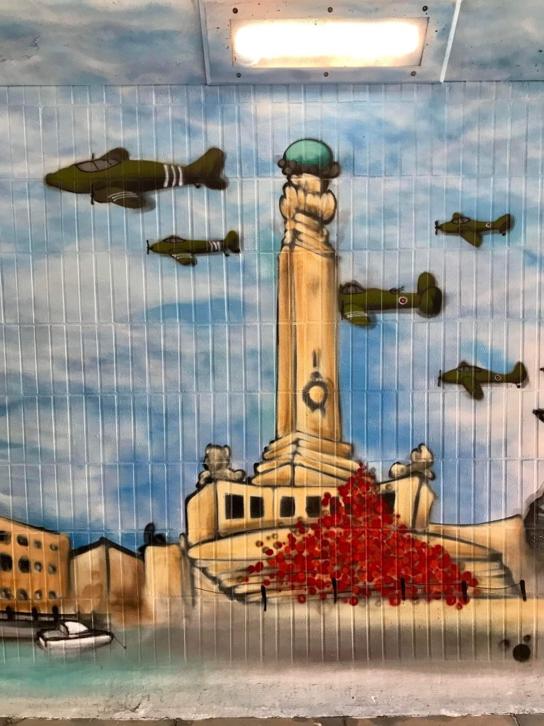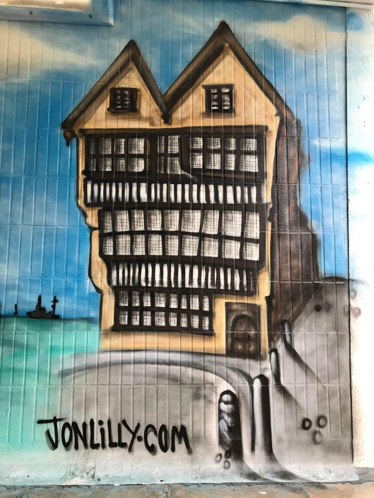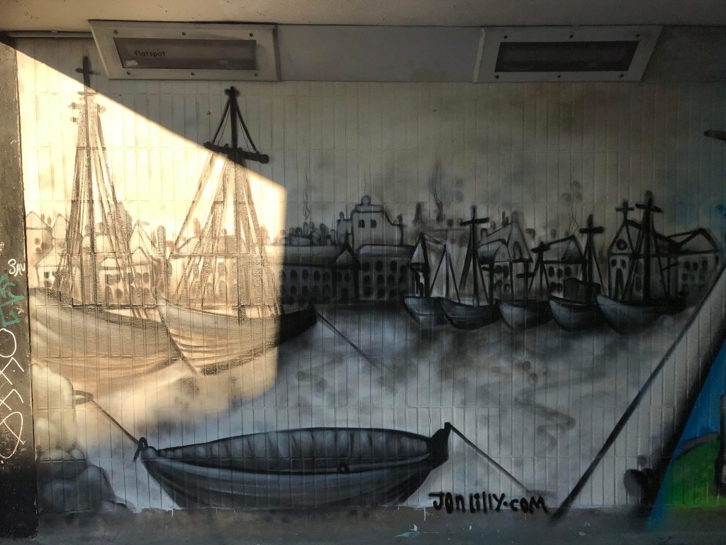 I was commissioned to design and paint the first of my two ‘Welcome To Plymouth’ murals by Plymouth City Council in August 2020. I am really proud of this piece, as it is the first thing you see when you walk from the train station to the city centre. The concept is around moving through time, from the black and white images of Plymouth’s past, to the colourful images of Plymouth’s present.